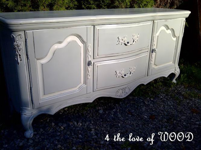 I had found this lovely french provincial side board buffet at auction years ago. It was that classic dark brown wood look with shiny gold handles.